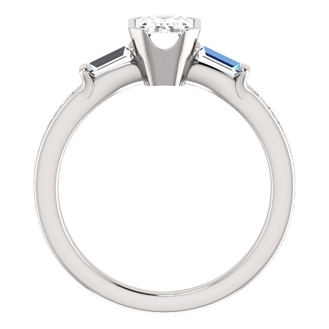 Side Stone(s): Total (18) 5A Cubic Zirconia side stones (2 Baguette 4.00x3.00 mm Bar setting, 16 Round 1.20 mm Prong Setting)*