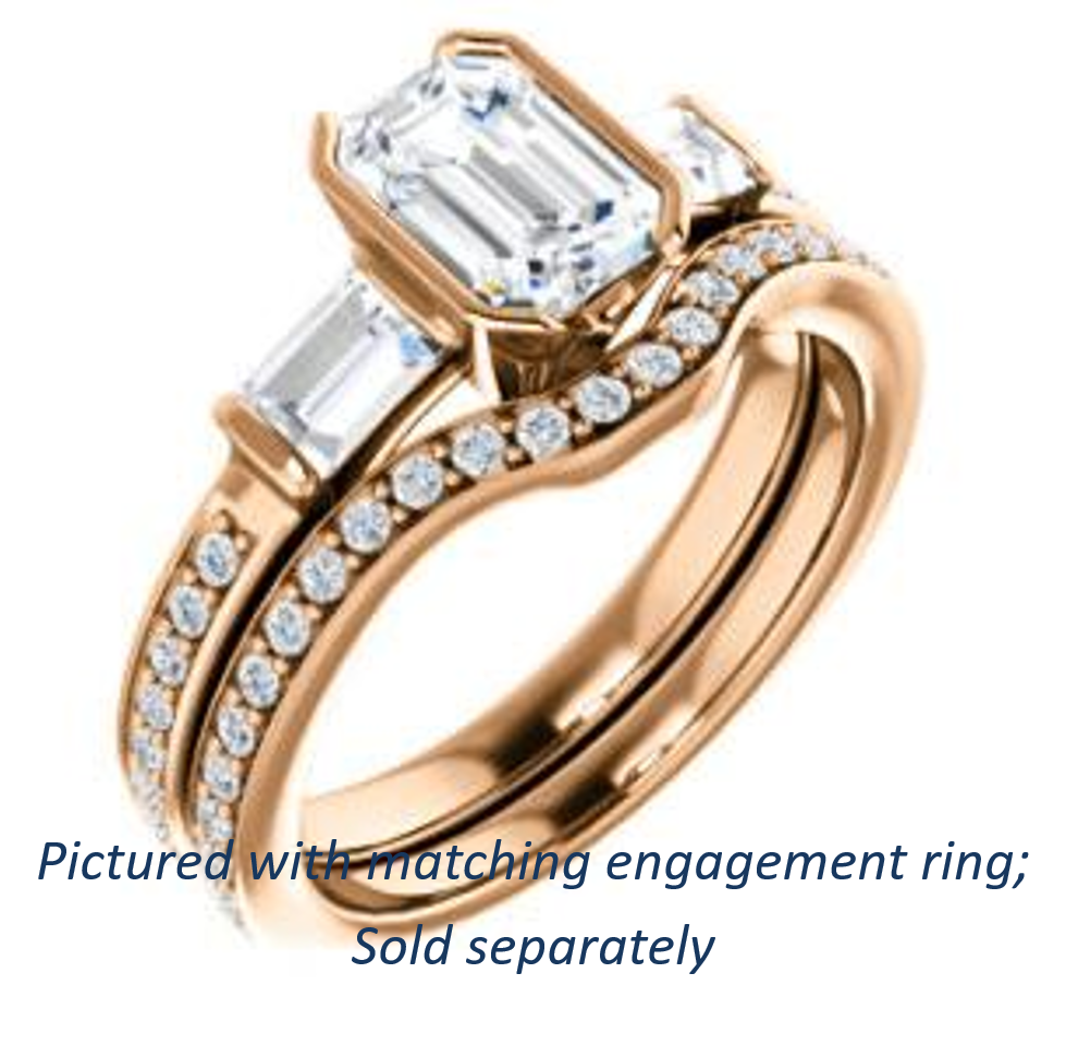 Plus early morning sex is some of the best sex. That says nothing about what might be awaiting you when the bedroom door opens and the real world intrudes, but for those stolen moments together none of that matters. Let your (future) wife know that sometimes the most sensual thing she can do is simply to wake up next to you. The right engagement ring ought to serve as a reminder of how you made her feel when courting. Did you sweep her off her feet? Good! Don’t put that broom down just yet, sir! Some potential customers have been fooled by the slim and delicate design of this highly-popular engagement ring style. Yet, The Naomi packs some serious punch in the carat-weight department. We took a three-stone style featuring dual 4x3 mm baguette accents flanking an Emerald Cut center stone (choose 0.75, 1.00, 1.50 or 2.50 carat), and then we added a 16-stone pavé band for good measure. The result has been known to cause spontaneous ecstasy in some women. There's no coincidence that Naomi spelled backwards = "i moan". O happy day! Get The Naomi alone or for extra pleasure, pair her up with the matching anniversary band to complete the wedding set and receive a sweet two-ring discount!
