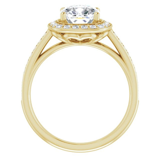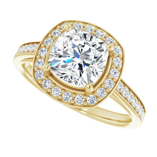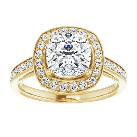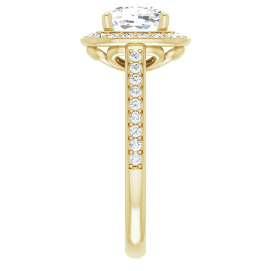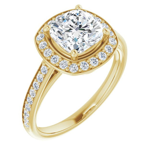 10K Yellow Gold Customizable Cathedral-raised Cushion Cut Halo-and-Accented Band Design