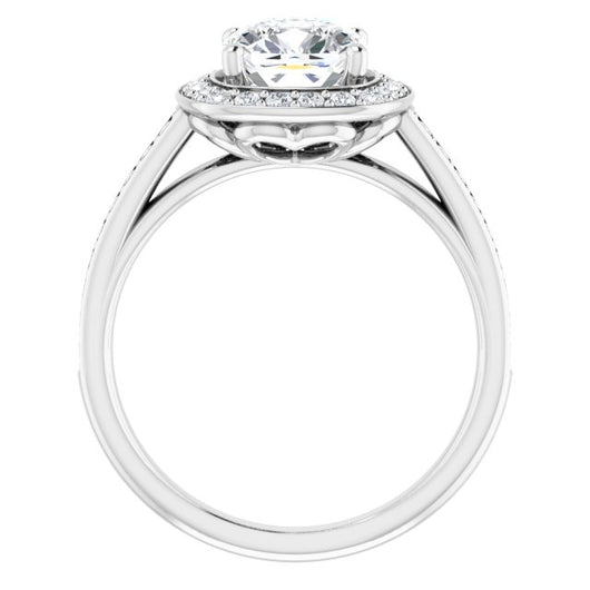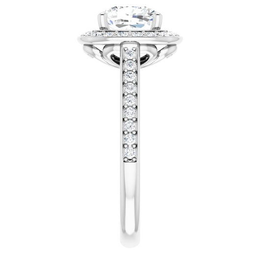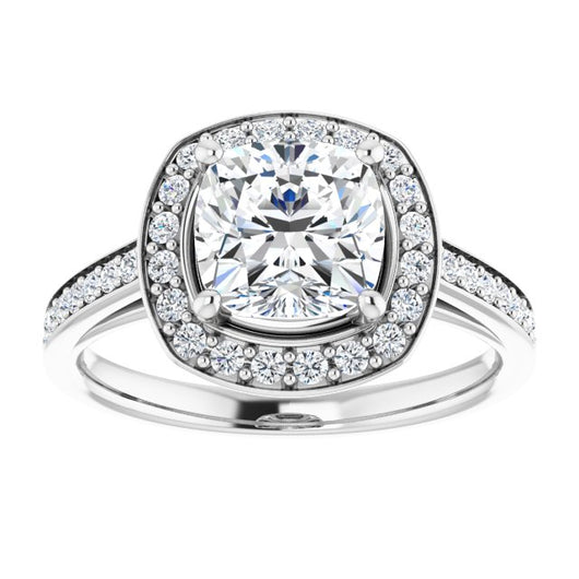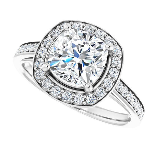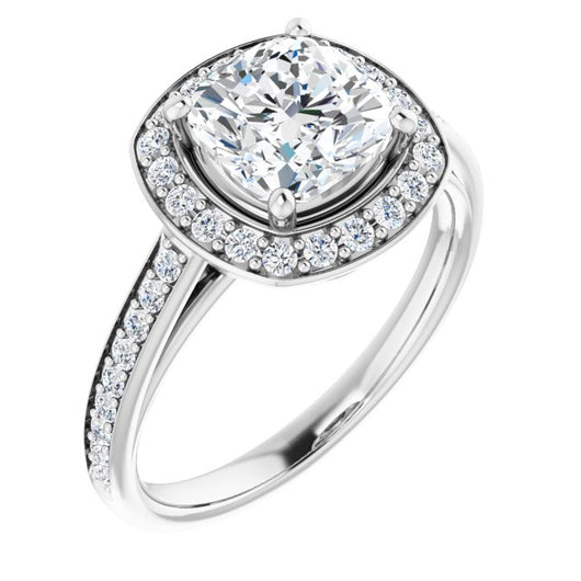 10K White Gold Customizable Cathedral-raised Cushion Cut Halo-and-Accented Band Design