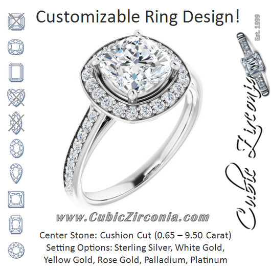 Cubic Zirconia Engagement Ring- The Natascha Eva (Customizable Cathedral-raised Cushion Cut Halo-and-Accented Band Design)