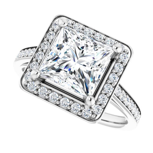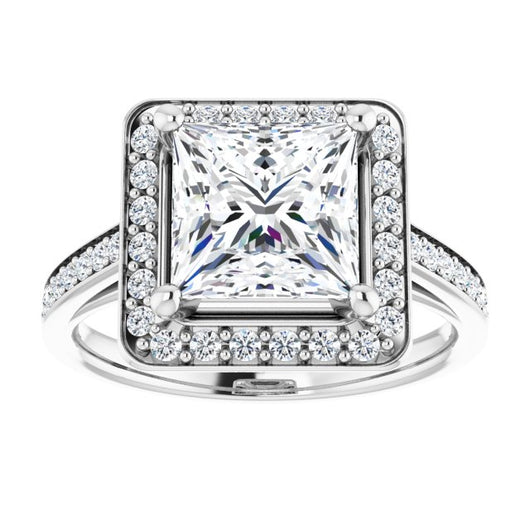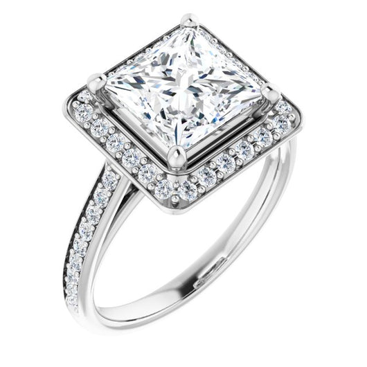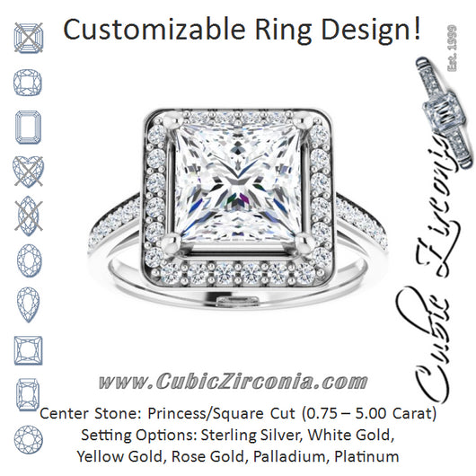 Cubic Zirconia Engagement Ring- The Natascha Eva (Customizable Cathedral-raised Princess/Square Cut Halo-and-Accented Band Design)