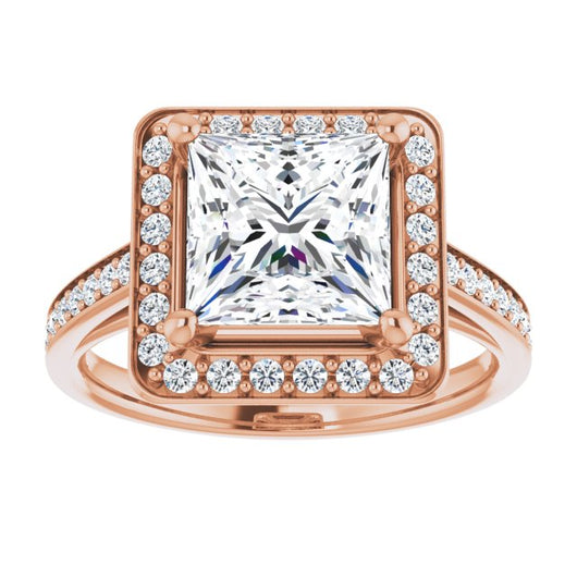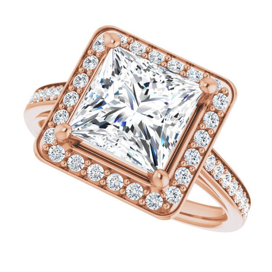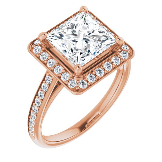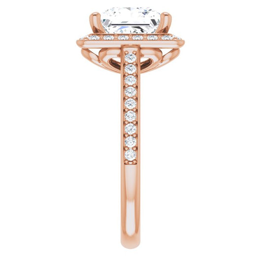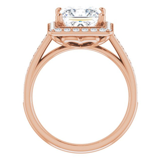 10K Rose Gold Customizable Cathedral-raised Princess/Square Cut Halo-and-Accented Band Design