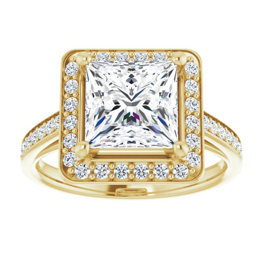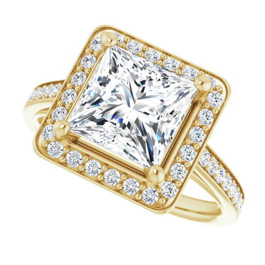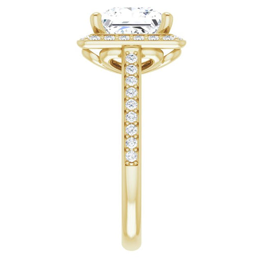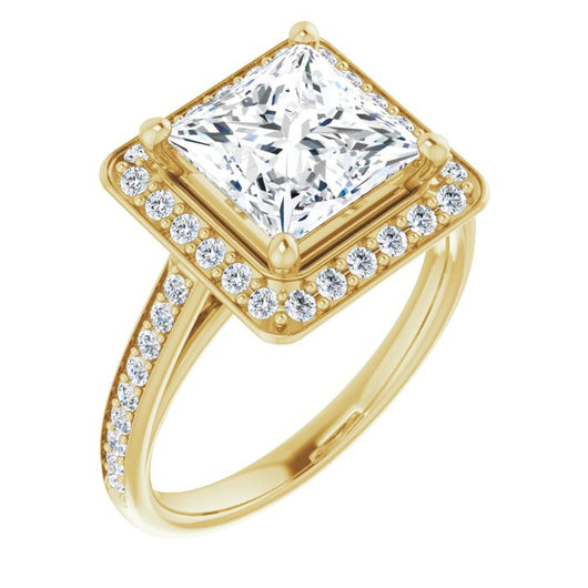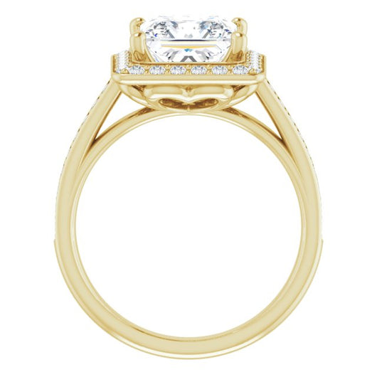 10K Yellow Gold Customizable Cathedral-raised Princess/Square Cut Halo-and-Accented Band Design