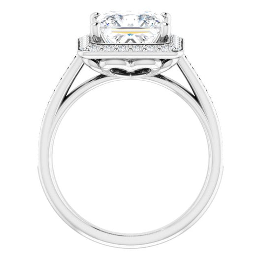 10K White Gold Customizable Cathedral-raised Princess/Square Cut Halo-and-Accented Band Design