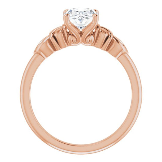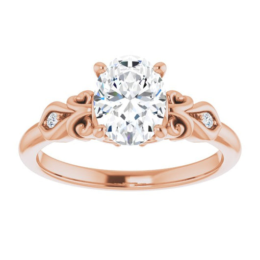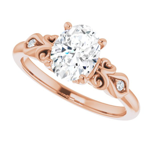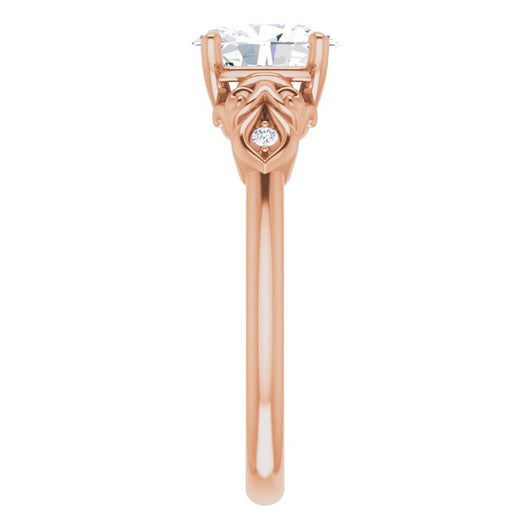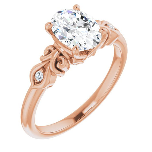 10K Rose Gold Customizable 3-stone Oval Cut Design with Small Round Accents and Filigree