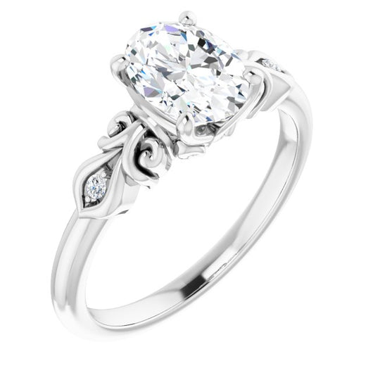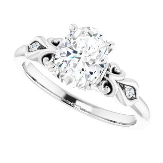 10K White Gold Customizable 3-stone Oval Cut Design with Small Round Accents and Filigree