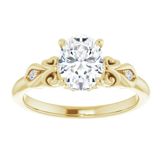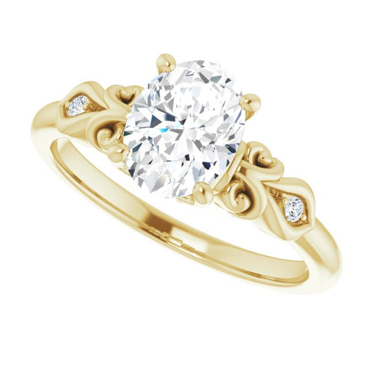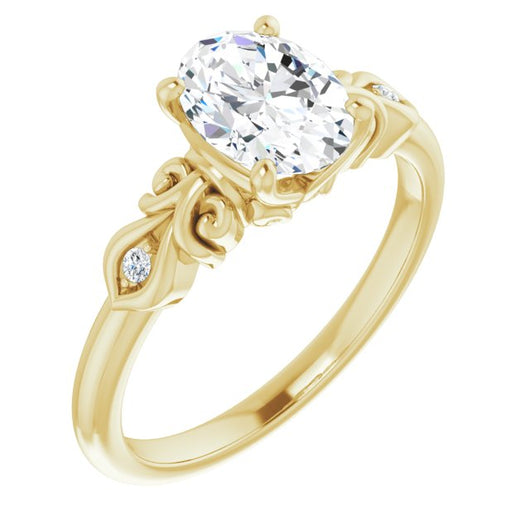 10K Yellow Gold Customizable 3-stone Oval Cut Design with Small Round Accents and Filigree