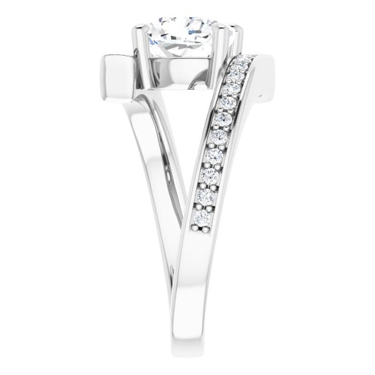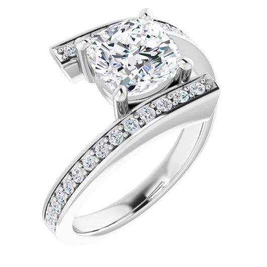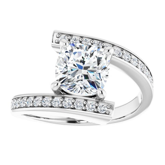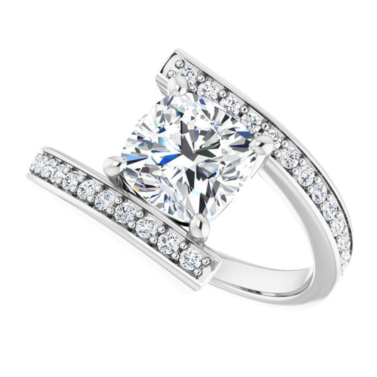 10K White Gold Customizable Faux-Bar-set Cushion Cut Design with Accented Bypass Band