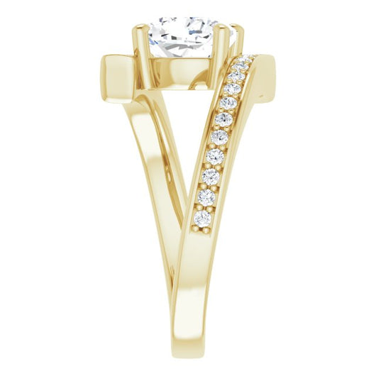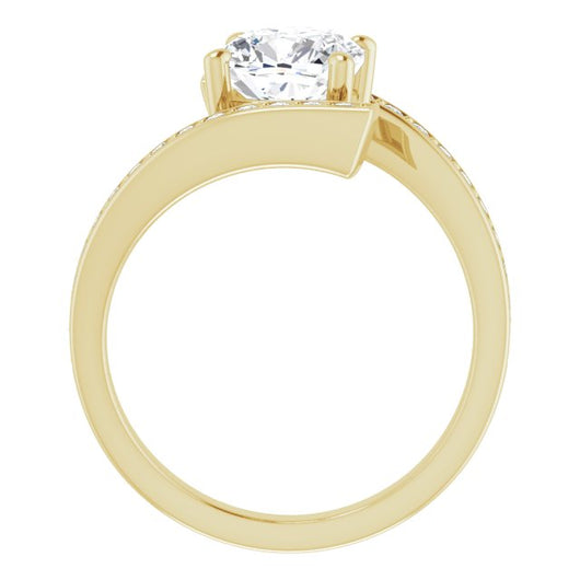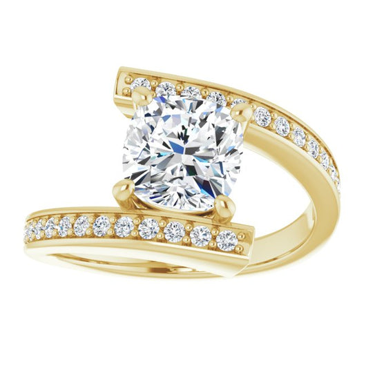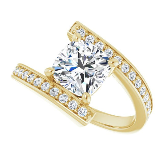 10K Yellow Gold Customizable Faux-Bar-set Cushion Cut Design with Accented Bypass Band
