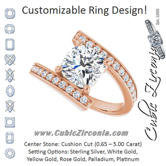Cubic Zirconia Engagement Ring- The Nayeli (Customizable Faux-Bar-set Cushion Cut Design with Accented Bypass Band)