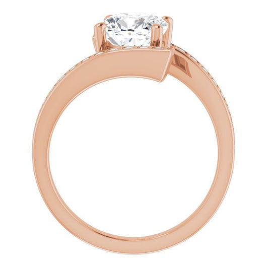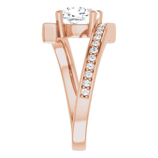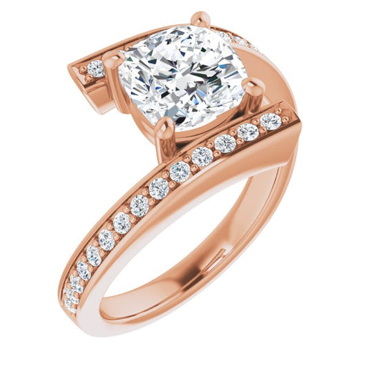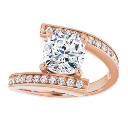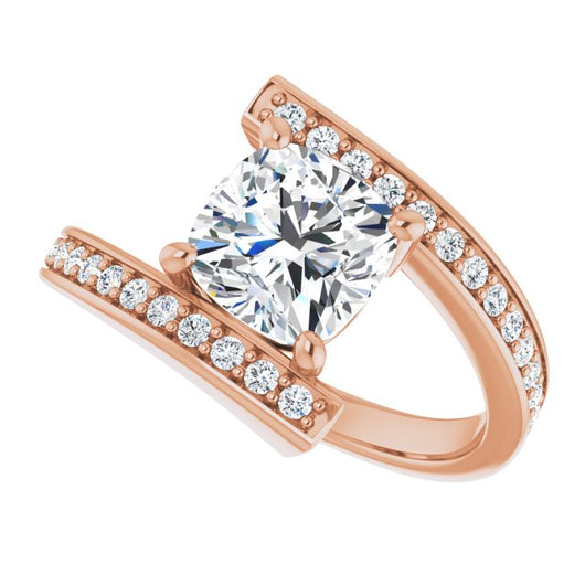 10K Rose Gold Customizable Faux-Bar-set Cushion Cut Design with Accented Bypass Band
