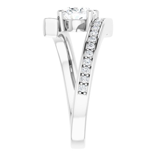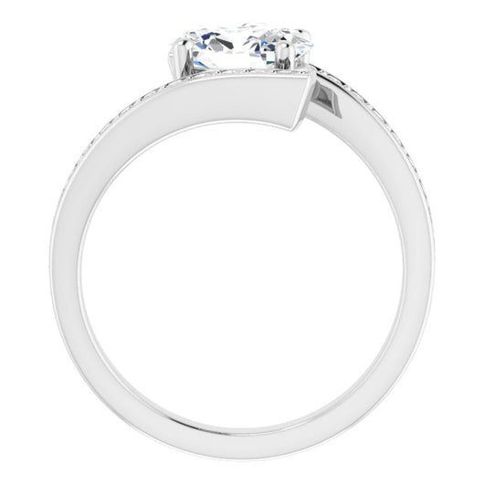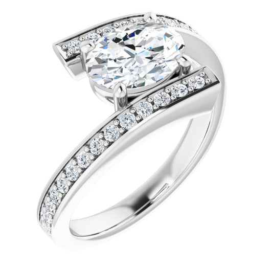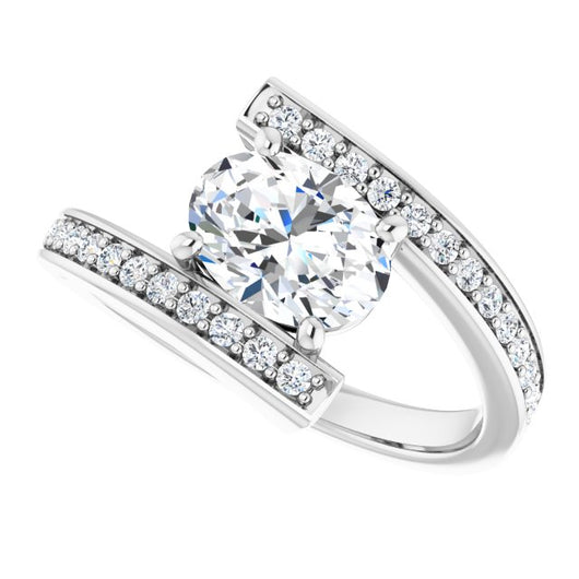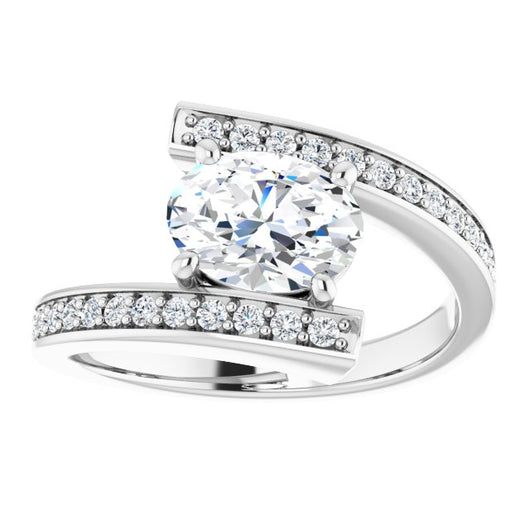 10K White Gold Customizable Faux-Bar-set Oval Cut Design with Accented Bypass Band