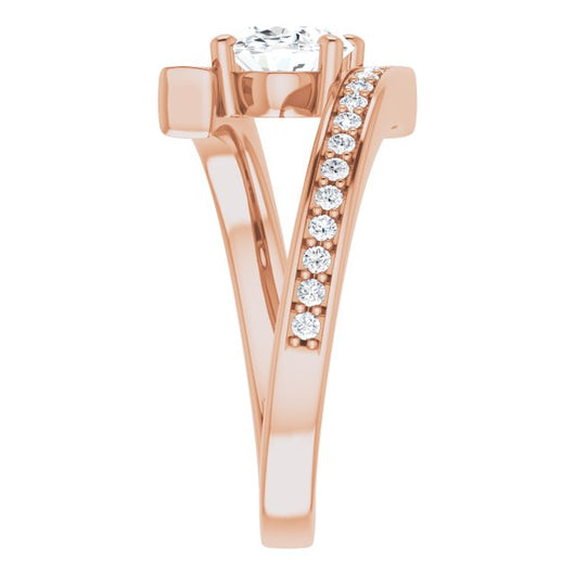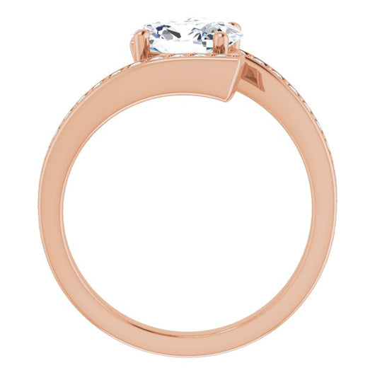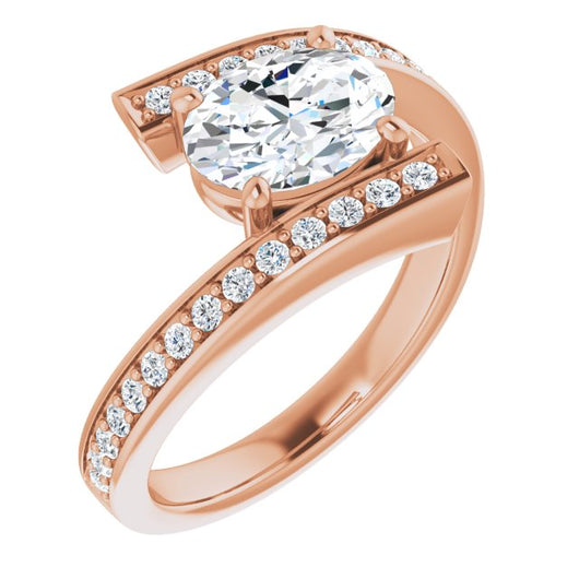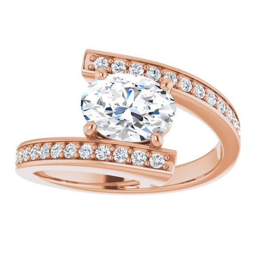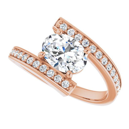 10K Rose Gold Customizable Faux-Bar-set Oval Cut Design with Accented Bypass Band