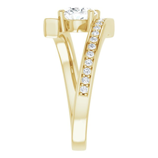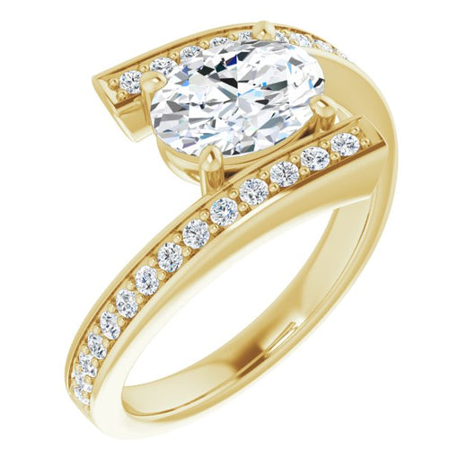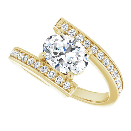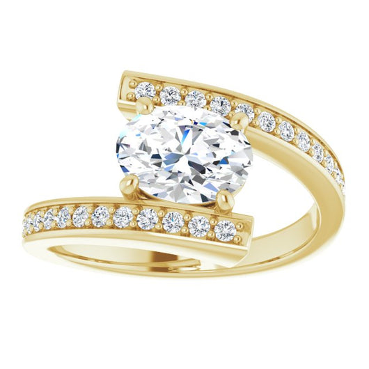 10K Yellow Gold Customizable Faux-Bar-set Oval Cut Design with Accented Bypass Band