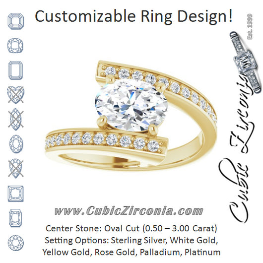 Cubic Zirconia Engagement Ring- The Nayeli (Customizable Faux-Bar-set Oval Cut Design with Accented Bypass Band)