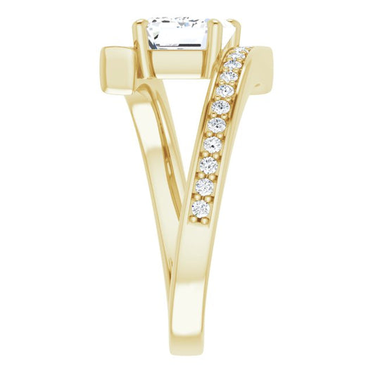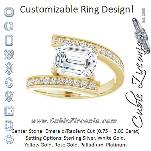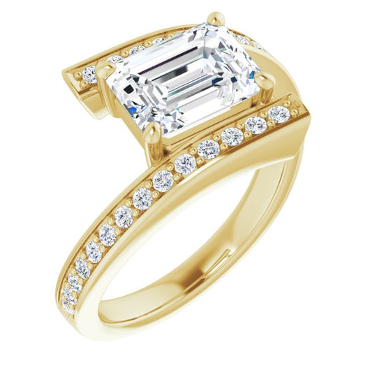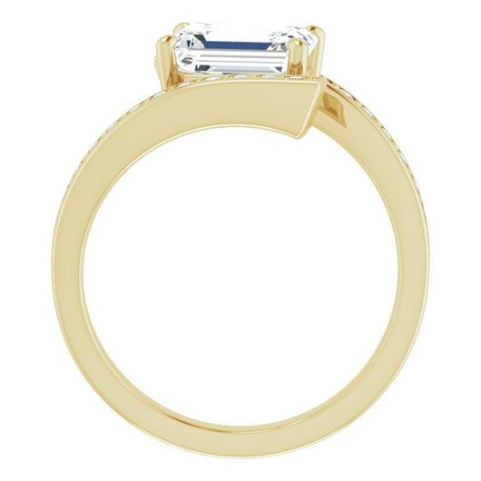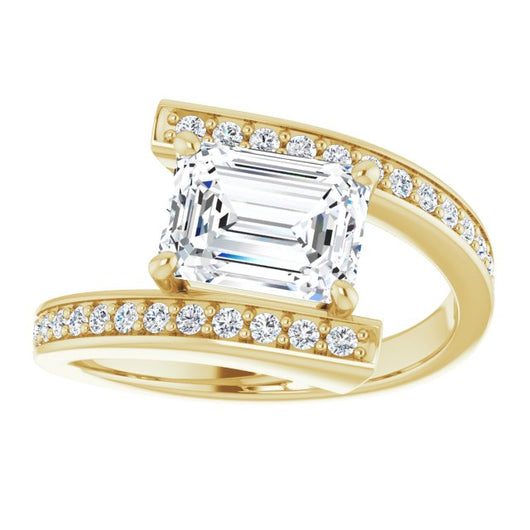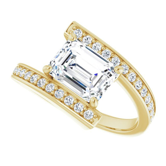 10K Yellow Gold Customizable Faux-Bar-set Emerald/Radiant Cut Design with Accented Bypass Band