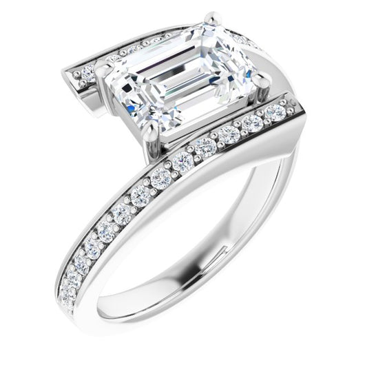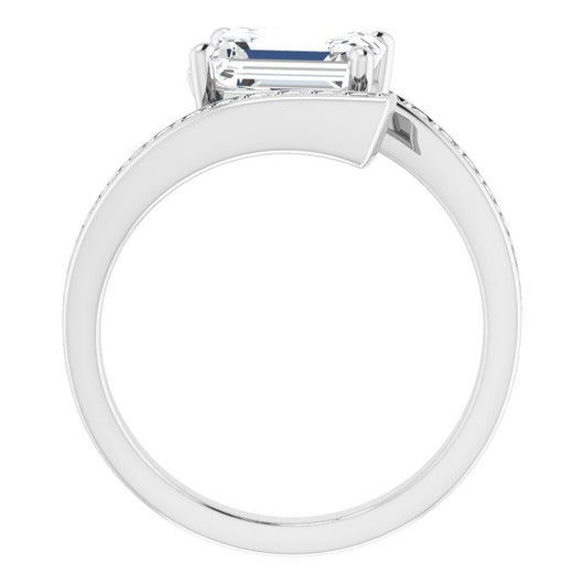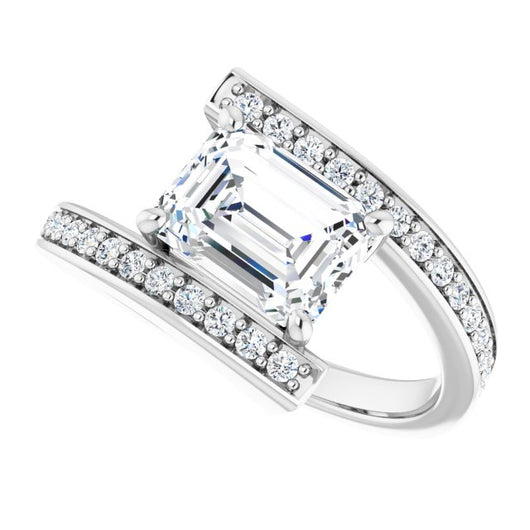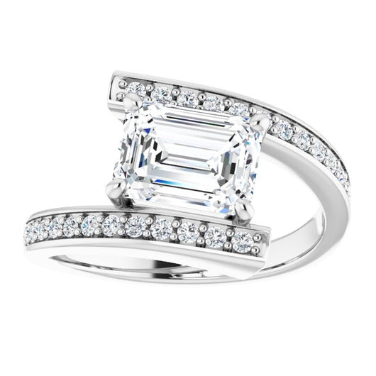 10K White Gold Customizable Faux-Bar-set Emerald/Radiant Cut Design with Accented Bypass Band