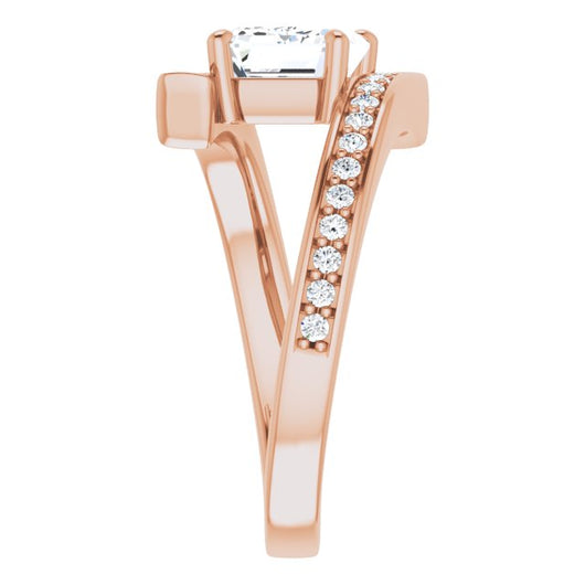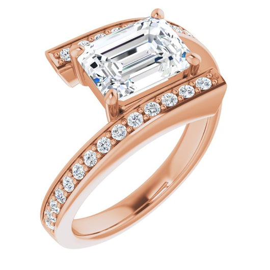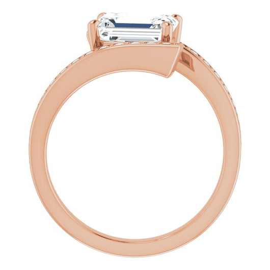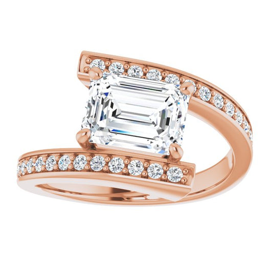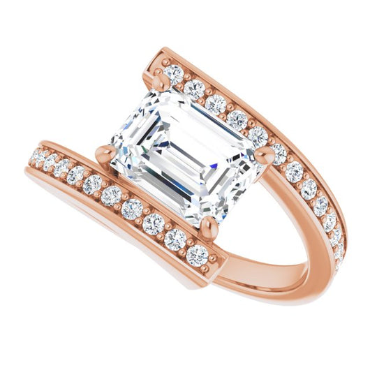 10K Rose Gold Customizable Faux-Bar-set Emerald/Radiant Cut Design with Accented Bypass Band