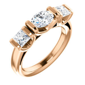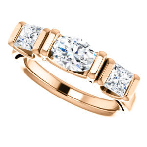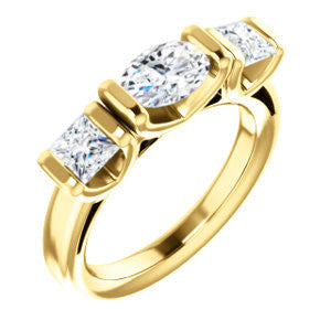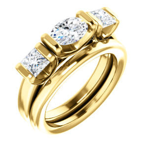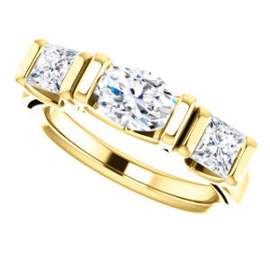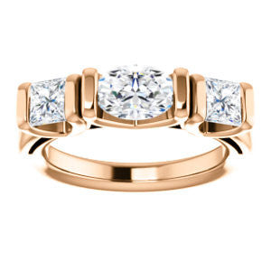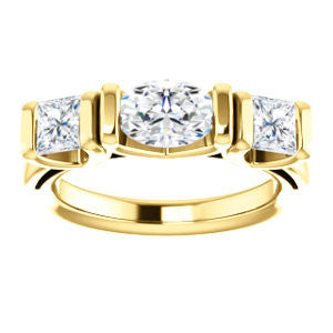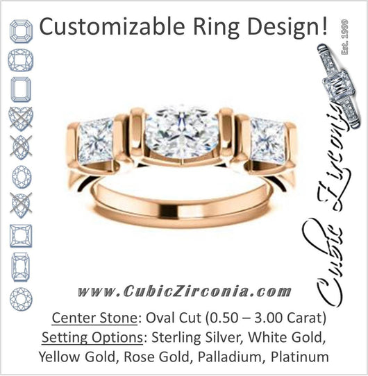Cubic Zirconia Engagement Ring- The Nazareth (Customizable 3-stone Bar-set Oval Cut Design with Princess Accents)