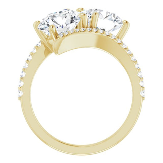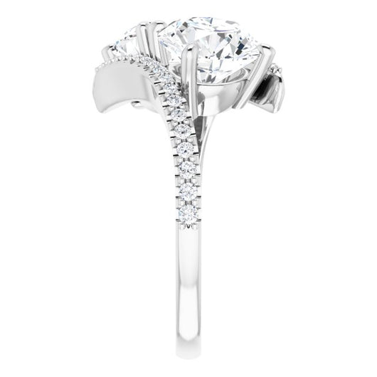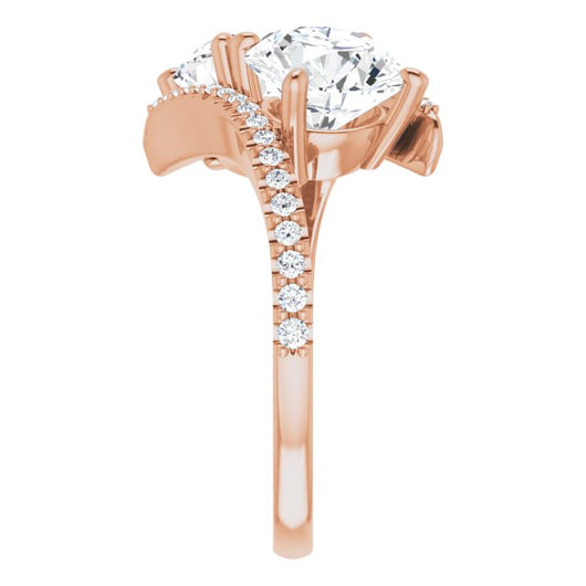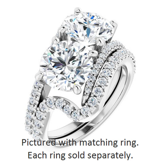 * Your ring’s total carat weight (TCW), band width, weight in grams, and/or number and size of accent, pavé, or halo stones will vary up or down depending on your choice of customizable center stone shape and size, precious metal type, and finger ring size via the drop-down options provided.