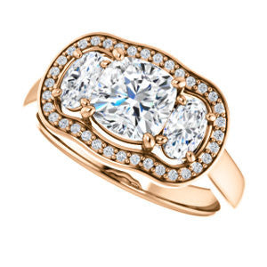 Cubic Zirconia Engagement Ring- The Nettie (Customizable Enhanced 3-stone Halo-Surrounded Design with Cushion Cut Center, Dual Oval Cut Accents, and Decorative Pavé-Accented Trellis)