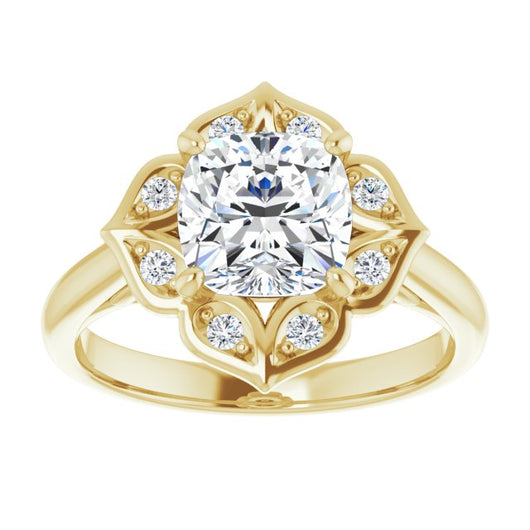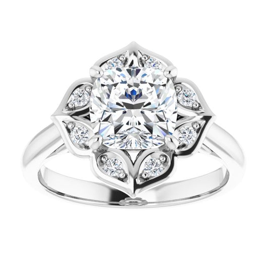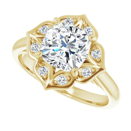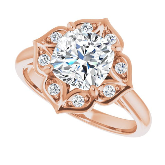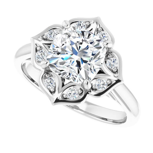 Center Stone Shape: Cushion Cut (as pictured). See this customizable ring set with other available center stone shapes here: customize setting.
