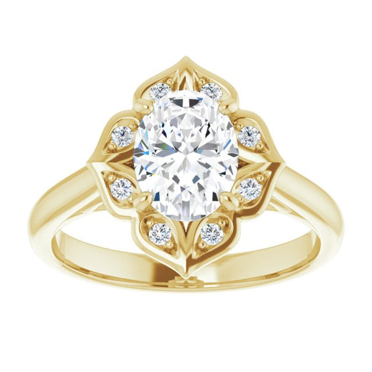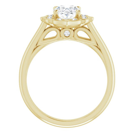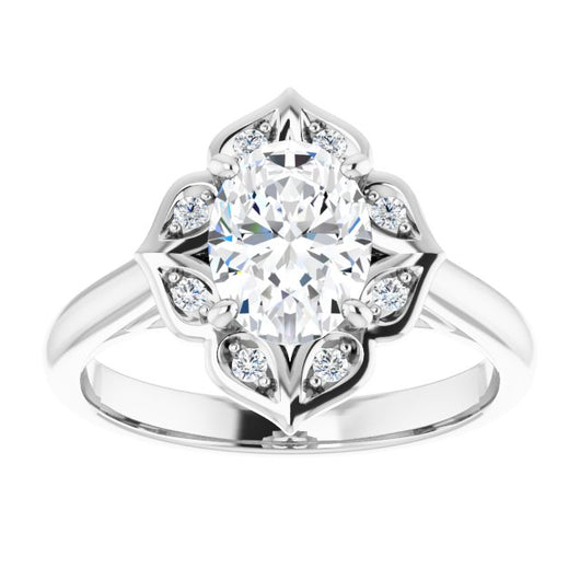 Center Stone Shape: Oval Cut (as pictured). See this customizable ring set with other available center stone shapes here: customize setting.