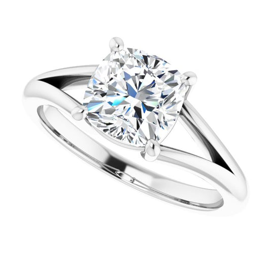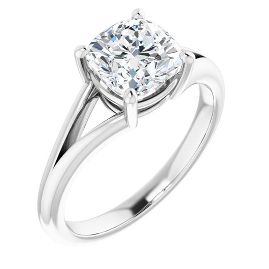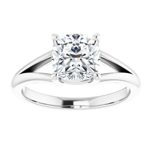 10K White Gold Customizable Cushion Cut Solitaire with Tapered Split Band