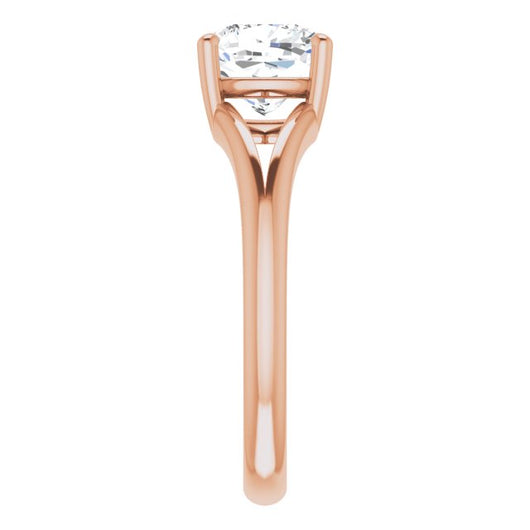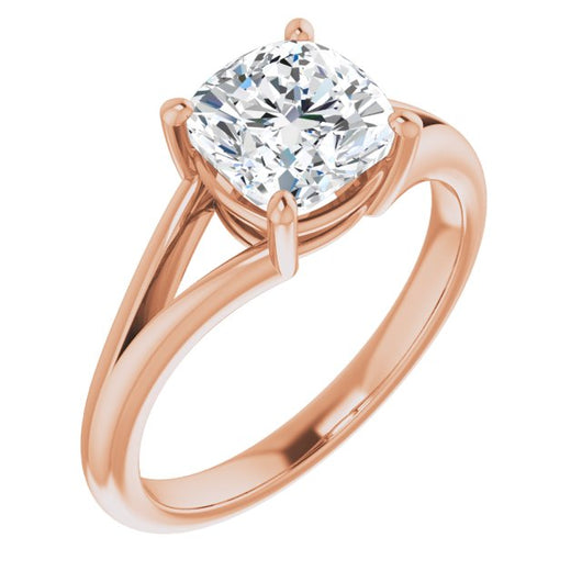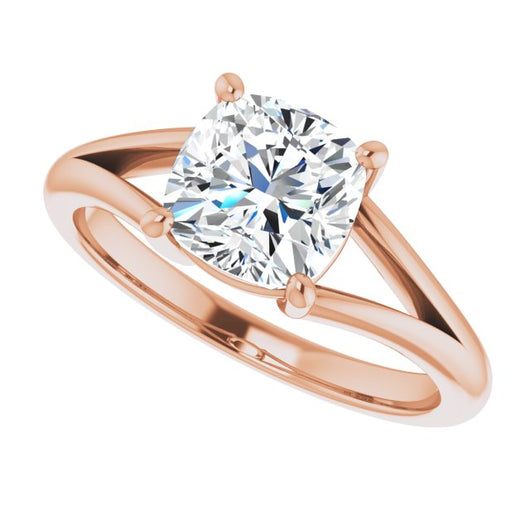 10K Rose Gold Customizable Cushion Cut Solitaire with Tapered Split Band