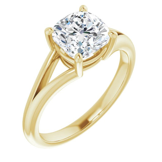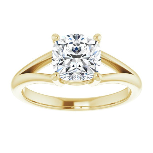 10K Yellow Gold Customizable Cushion Cut Solitaire with Tapered Split Band