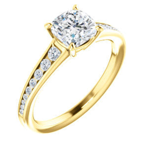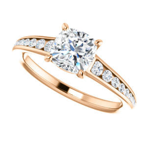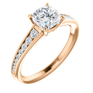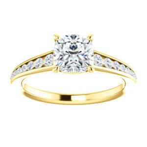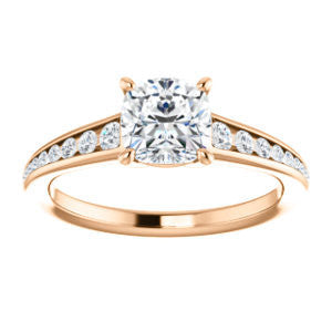 Cubic Zirconia Engagement Ring- The Noa (Customizable Cushion Cut Center featuring Tapered Band with Round Channel Accents)