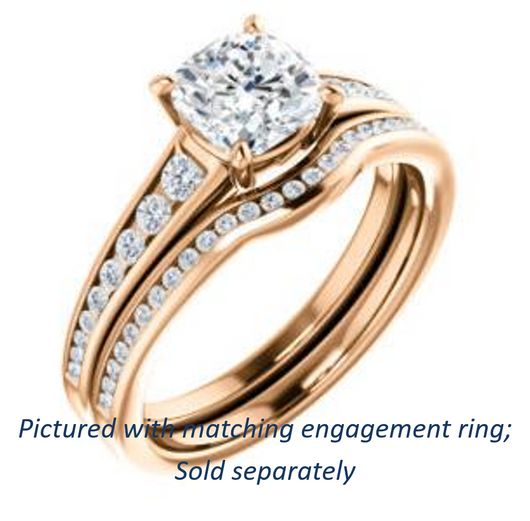 With a distinctive tapered band design and brilliant-sparkle Cushion Cut AAAAA (5A) diamond-quality Cubic Zirconia center stone in the carat size of your choice (choose 0.65 to 5.0 carats), what's not to like? You can even take your pick of the precious metals from which we manufacture our signature CubicZirconia.com high-end finished jewelry. This will be the journey of your lives side-by-side from where you are today to where you want to be, hand-in-hand just like the channel-inlaid sides of the round-cut-stone-accented band surrounding this ring. Are you ready? She's ready. There's no denying yourself this truth anymore: it's going to be better together! Take her hand today, and step into tomorrow. Get The Noa engagement ring as a stand-alone or together with the matching anniversary band to complete the cubic zirconia bridal set!