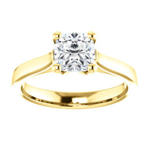 It’s our experienced experience (online since 1999!) that women young and old have always looked wonderful in simple solitaire styles. And still do today. And we’re willing to bet that they always will. A woman’s finger should be carefully adorned, as if it is the most precious thing on God’s green Earth. The metal should be durable but with a soft luster, and that’s why we offer The Noemie Jade in the most precious of precious metals: .925 Sterling Silver, 10 karat gold, 14 karat gold, 18 karat gold, Palladium or 950 Platinum. Impeccably made with a timeless handsome quality, The Noemie Jade is a 0.65 to 5.0 carat Cushion cut solitaire ring. Dress up or dress down, and you’ll never feel self-conscious accompanied by this ring.