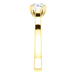 The Marquise Cut – of all the top center stone shapes, the marquise cut stone is among the least-requested in our CubicZirconia.com catalog, and perhaps the most uncommonly-seen among the gem cuts profiled in this article. Instead of serving as the primary or center stone in a ring or other piece of jewelry, marquise cut stones are more popularly used as accent stones. Although we do feel that a marquise-cut-centered ring design looks exceptional when placed vertically as a perpendicular gem enhancement above the backdrop of a horizontal, wide-banded ring design beneath! Due to its fragile corners and unwieldy shape, many jewelers find this brilliant-cut stone more difficult to work with than many other shapes. But the unique shape does have its admirers, and even though it's among the least popular of the profiled center stone shapes we're happy to provide hundreds of customizable ring styles that can be set with this beautiful gem shape. Care should also be taken when wearing jewelry with marquise cut stones because the shape has pointed tips that are prone to chipping and breakage. The marquise cut cut is elongated, with non-equal length and width.