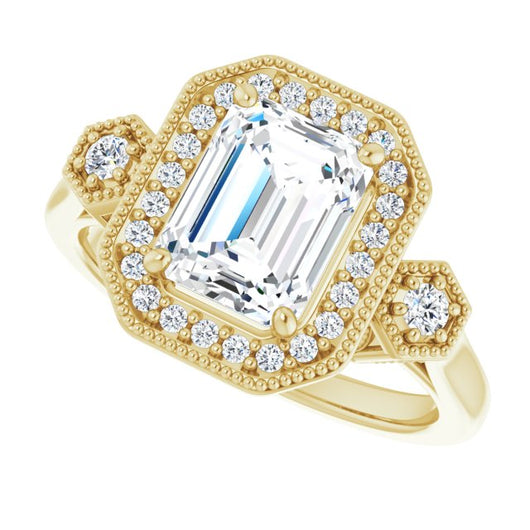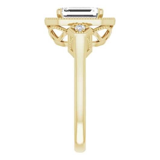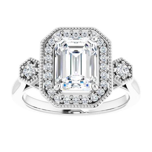 Center Stone Shape: Emerald Cut (as pictured). See this customizable ring set with other available center stone shapes here: customize setting.
