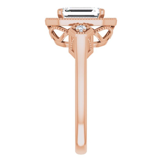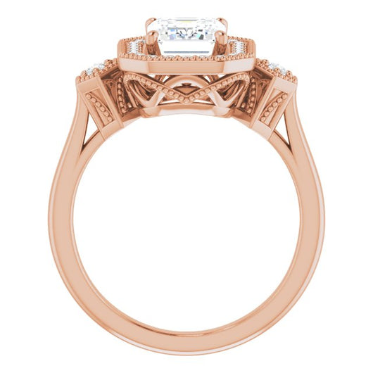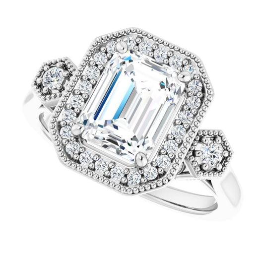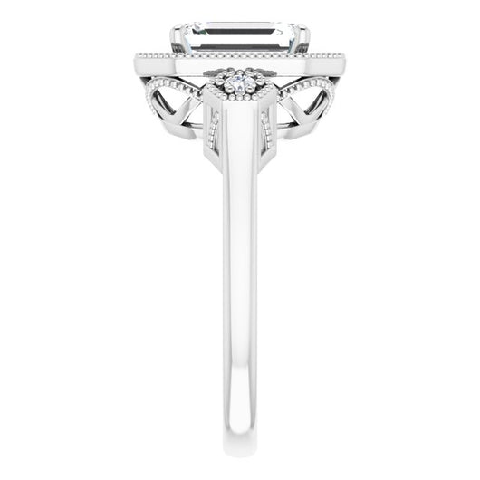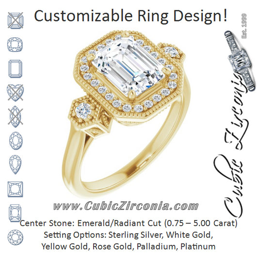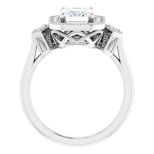 Center Stone Shape: Radiant Cut (as pictured with Emerald Cut). See this customizable ring set with other available center stone shapes here: customize setting.