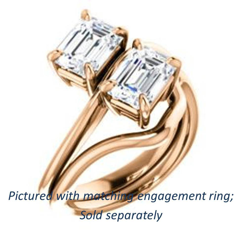Like a peppermint twist, The Patti engagement ring wraps her finger with a playful freeform shank, accented with sweet, side-by-side 5A cubic zirconia matching Radiant Cut stones in a two-stone style that's a sight to see. Your soul mate will love the whimsical nature of this ring. It speaks to her devil-may-care nature, her sense of adventure and fun. This unique ring has a matching band. Buy them together and you will take advantage of a discount. But that’s just the icing on the cake -- the swirl in your candy cane.