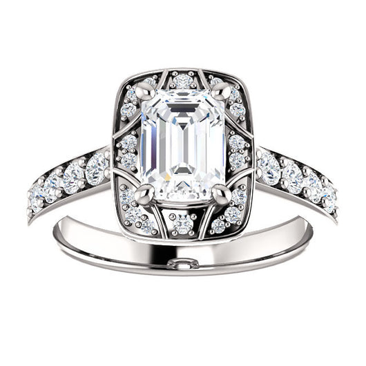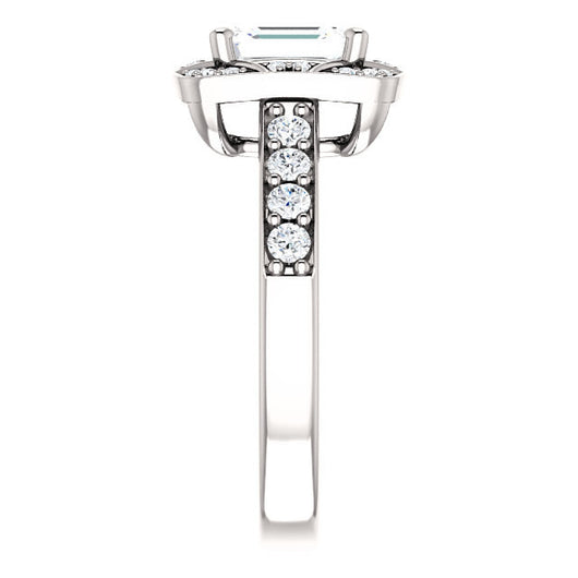* The exact dimensions and number of side stones (including accent, pave, or halo stones) and/or the total carat weight (TCW) of your ring will vary up or down depending on your choice of any customizable options for center stone shape or carat size and finger ring size.