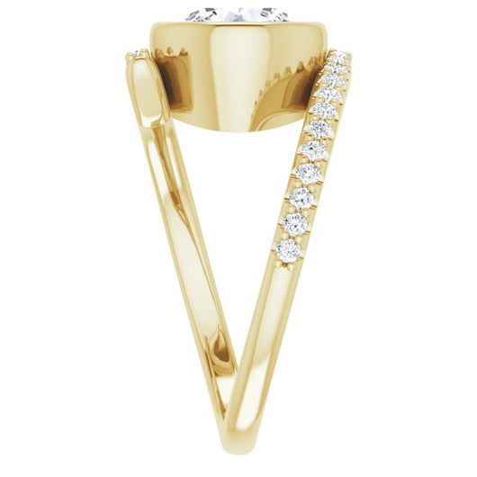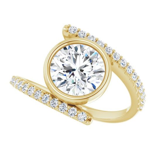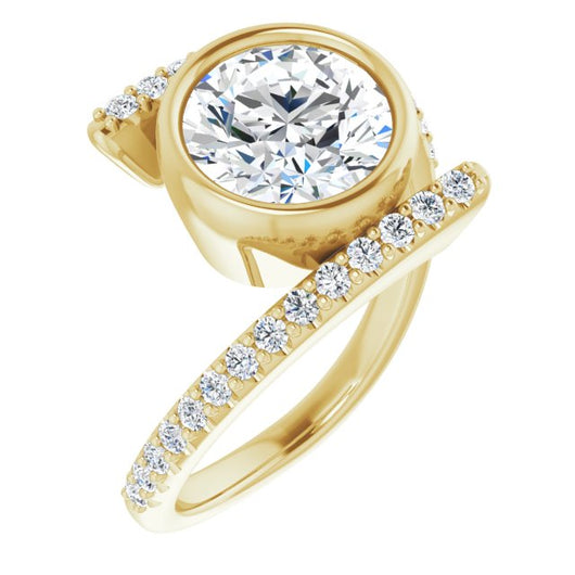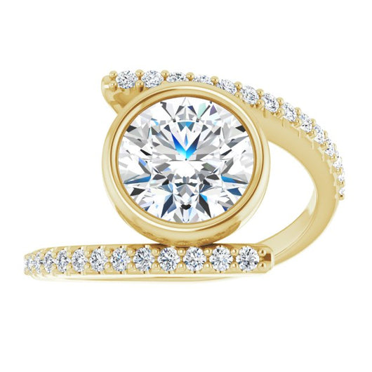 10K Yellow Gold Customizable Bezel-set Round Cut Design with Bypass Pavé Band
