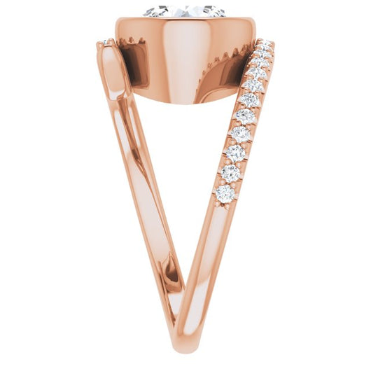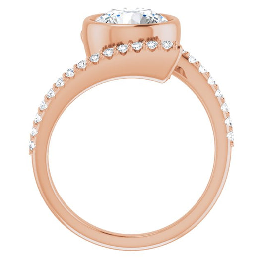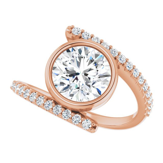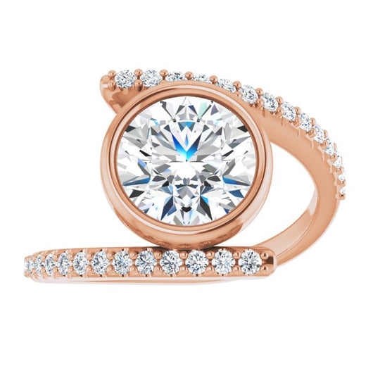 14K Rose Gold Customizable Bezel-set Round Cut Design with Bypass Pavé Band