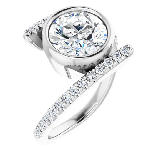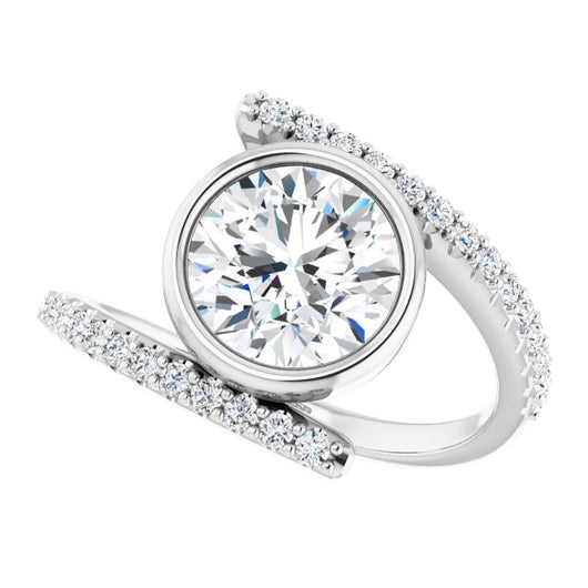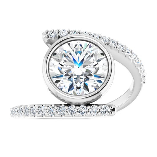 14K White Gold Customizable Bezel-set Round Cut Design with Bypass Pavé Band