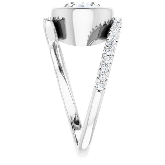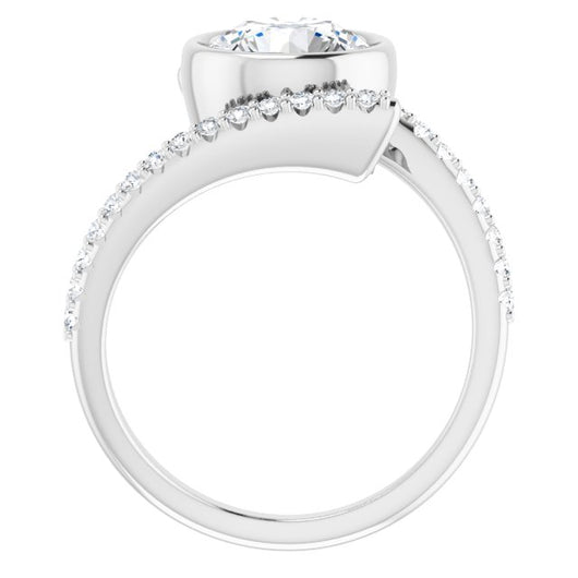 Cubic Zirconia Engagement Ring- The Pocahontas (Customizable Bezel-set Round Cut Design with Bypass Pavé Band)