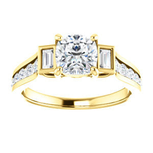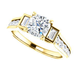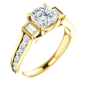 Center Stone Shape: Cushion Cut (as pictured). See this customizable ring set with other available center stone shapes here: customize setting.