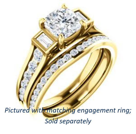 Side Stone(s): Total (14) 5A Cubic Zirconia side stones (2 Baguette 3.00x1.75 mm Bezel Set, 2 Round 2.50 mm Channel Setting, 2 Round 2.30 mm Channel Setting, 2 Round 2.10 mm Channel Setting, 2 Round 1.90 mm Channel Setting, 2 Round 1.70 mm Channel Setting, 2 Round 1.50 mm Channel Setting)