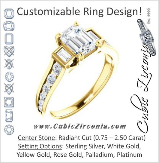 Side Stone(s): Total (14) 5A Cubic Zirconia side stones (2 Baguette 3.00x1.75 mm Bezel Set, 2 Round 2.50 mm Channel Setting, 2 Round 2.40 mm Channel Setting, 2 Round 2.20 mm Channel Setting, 2 Round 2.00 mm Channel Setting, 2 Round 1.75 mm Channel Setting, 2 Round 1.50 mm Channel Setting)