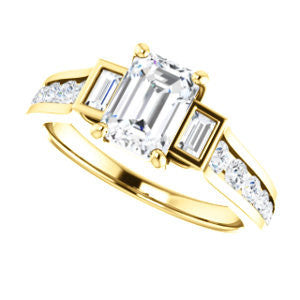 Center Stone Shape: Radiant Cut (as pictured with Emerald cut). See this customizable ring set with other available center stone shapes here: customize setting.