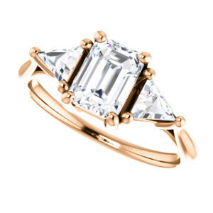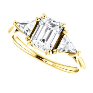 Cubic Zirconia Engagement Ring- The Prisma (Classic Three-Stone Triangle Accent and Emerald Cut center)
