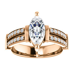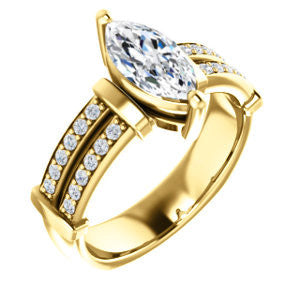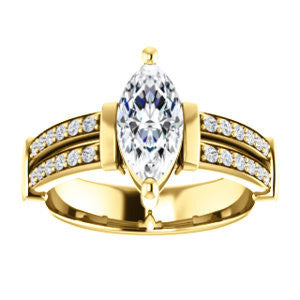 Cubic Zirconia Engagement Ring- The Rachana (Customizable Marquise Cut Design with Wide Split-Pavé Band and Euro Shank)