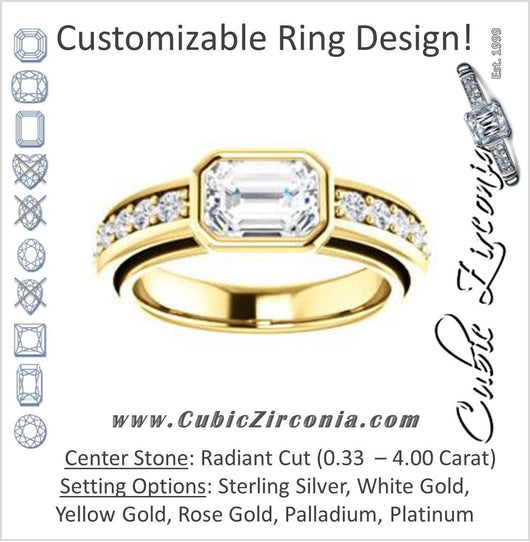 Cubic Zirconia Engagement Ring- The Racquel (Customizable Cathedral-Bezel Radiant Cut Design with Stackable Round-Accented Band)